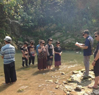 | Making a small dam, in the Thai jungle, to prepare a natural baptistry |